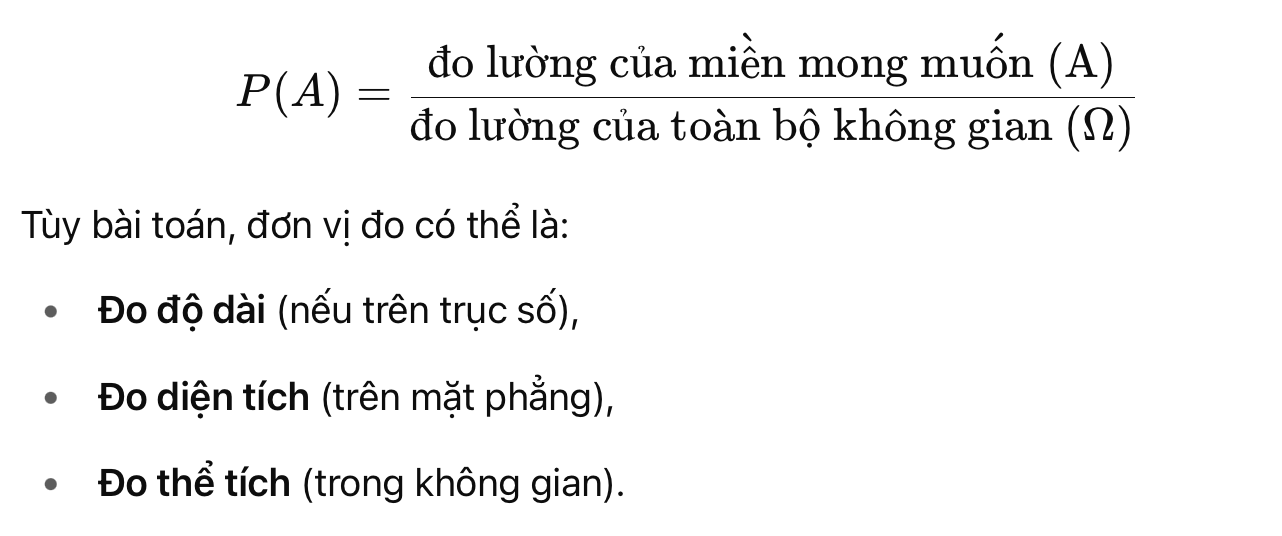 Geometric Probability Trong trường hợp các khả năng xảy ra là một biến liên tục, cách tính xác suất cổ điển không thể “đếm” được. Khi nào dùng?