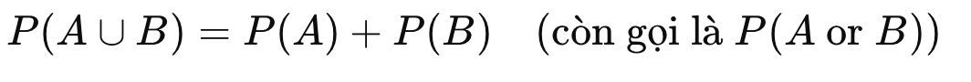 | Cộng (rời nhau) | P(A∪B)=P(A)+P(B) |