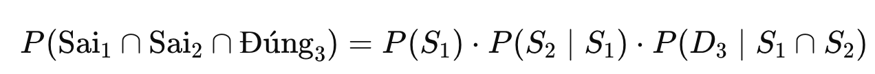 - Câu hỏi: Xác suất cửa được mở đúng vào lần thử thứ 3? Hiểu bản chất yêu cầu: