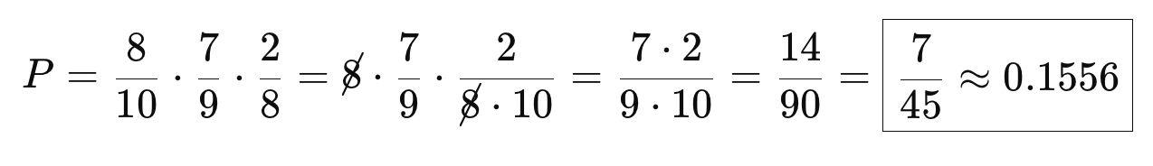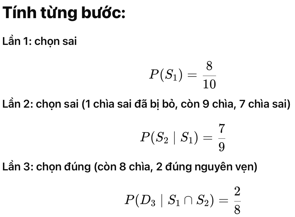 - Có 10 chìa khoá giống hệt nhau, trong đó 2 chìa đúng (mở được cửa), còn 8 chìa sai (không mở được).