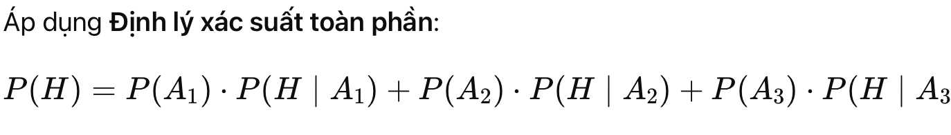 → Các sự kiện A1,A2,A3 tạo thành một hệ phân hoạch đầy đủ của không gian mẫu)
