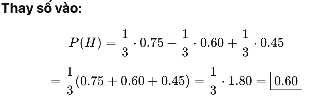 Tổng xác suất của toàn bộ không gian mẫu:
