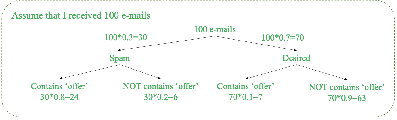 Xác suất một email là spam nếu chứa từ “offer”?