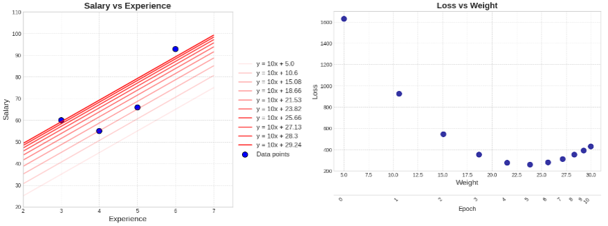 - Khi thay đổi, đường hồi quy dịch chuyển lên hoặc xuống song song với nhau. Mục đích là để xem giá trị nào làm cho đường gần dữ liệu nhất.