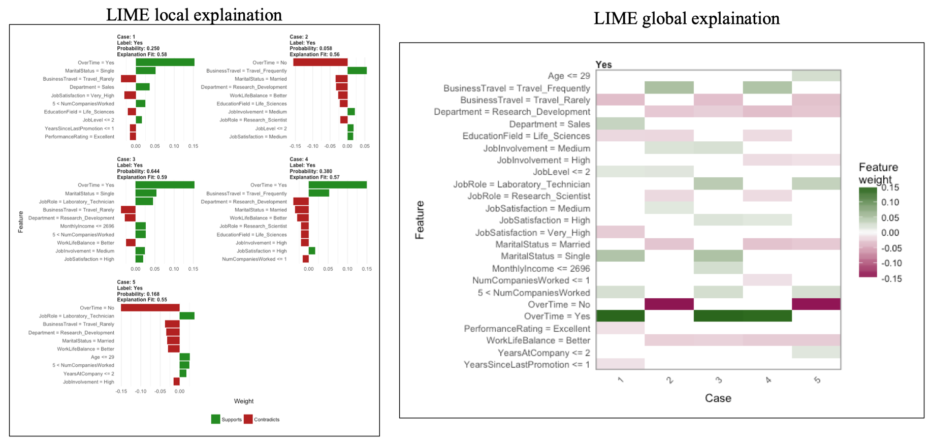 Case 3–5Yes16–64%Các yếu tố như JobRole, Department, BusinessTravel, WorkLifeBalance, … ảnh hưởng riêng biệt cho từng người.
