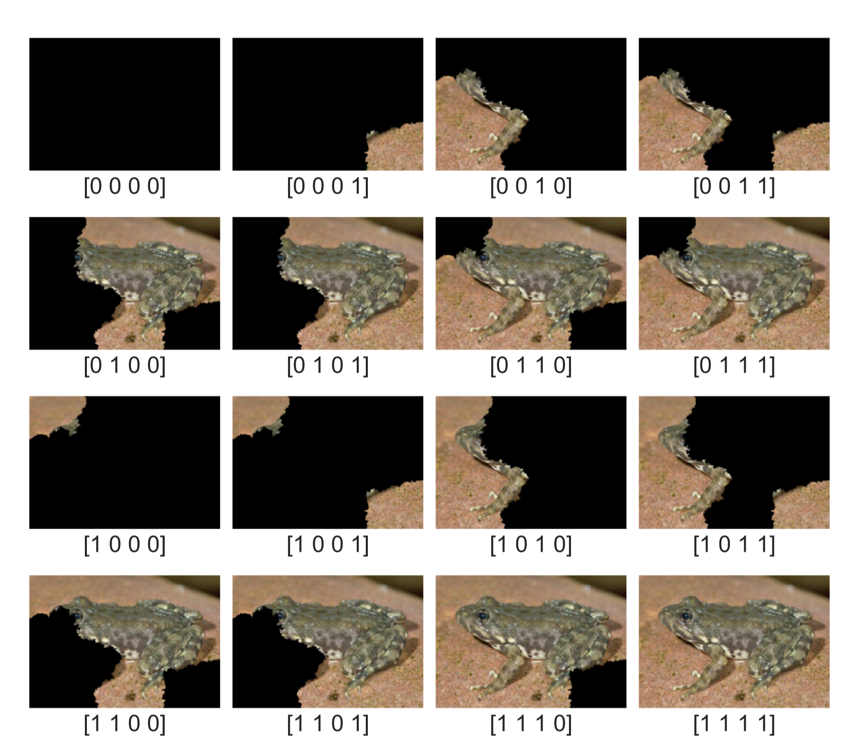 Từ cách biểu diễn này, ta có thể tạo ra các mẫu dữ liệu mới bằng cách lần lượt giữ lại hoặc loại bỏ từng superpixel, qua đó thu được tổng cộng ảnh.