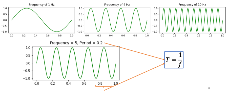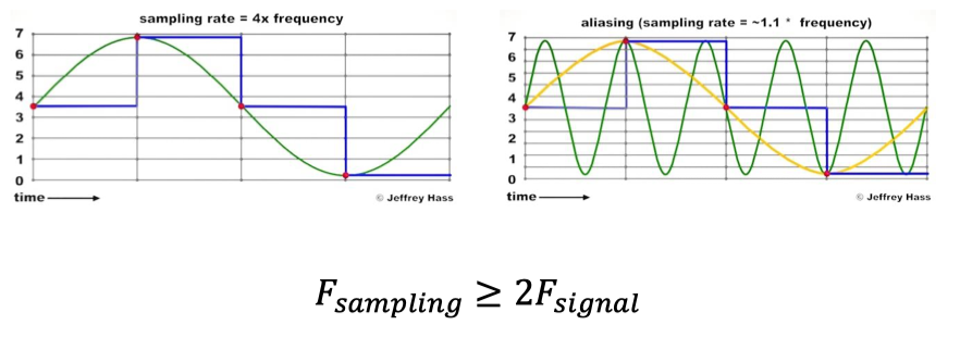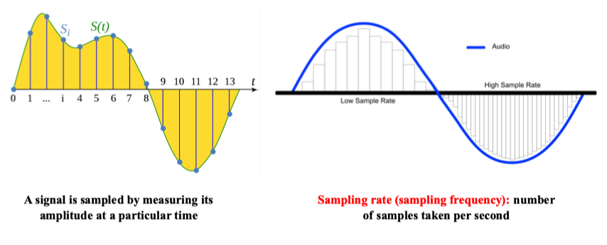 Sampling rate (sampling frequency): là tần số lấy mẫu, số lượng mẫu dữ liệu lấy theo giây. Tần số lấy mẫu càng cao thì sóng dữ liệu càng mịn.