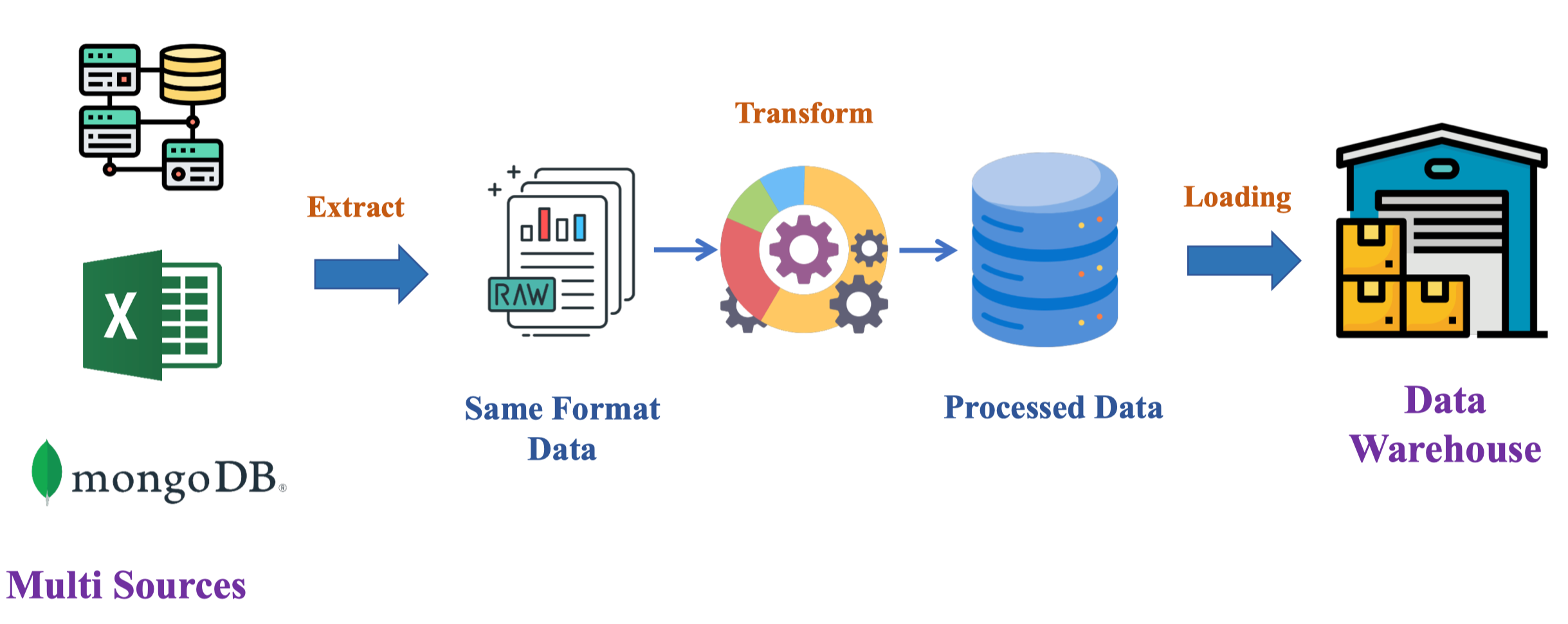 Để warehouse hoạt động đúng, ta cần hệ thống ETL. Mình thấy ETL như một “dây chuyền lọc” để biến dữ liệu hỗn tạp thành dạng chuẩn hóa và an toàn.