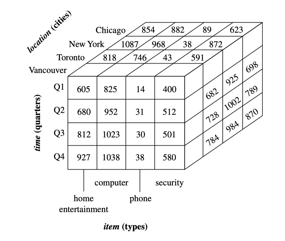 Khi hình dung data cube, mình thấy nó giống chiếc “khối rubik” dữ liệu. Mỗi mặt thể hiện một góc nhìn, mỗi lớp lát cắt cho một điều kiện lọc, và mỗi ô trong cube là một giá trị đo lường như tổng doanh thu. Dữ liệu từ bảng fact và dimension được kết hợp thành không gian đa chiều, giúp việc “xoay” dữ liệu rất tự nhiên. Chính vì vậy, data cube trở thành phương thức trực quan để tổng hợp dữ liệu và trả lời các câu hỏi phân tích phức tạp mà không tốn quá nhiều thời gian tính toán lại mỗi lần.