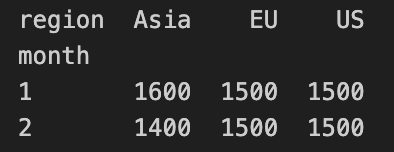 # Pivot: hàng = tháng, cột = region, giá trị = tổng sales