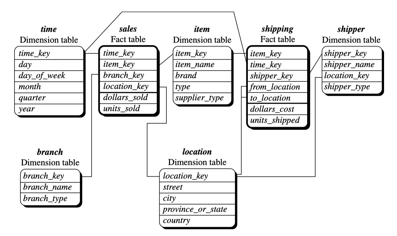 Khi ETL hoàn thành, dữ liệu được nạp vào warehouse theo mô hình star, snowflake hoặc constellation. Warehouse lưu dữ liệu theo các bảng fact lớn và nhiều bảng dimension nhỏ hơn. Mình thấy cấu trúc này giúp phân tích dễ dàng hơn, vì mỗi fact table mô tả một loại hoạt động quan trọng như bán hàng hoặc vận chuyển, còn dimension mô tả bối cảnh của hoạt động đó.